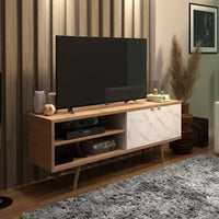 El Rack para TV 60" R1482 de Nordic combina diseño escandinavo, funcionalidad y elegancia en un mueble pensado para televisores de hasta 60 pulgadas. Fabricado en MDP de alta densidad, ofrece gran resistencia y durabilidad. Su acabado bicolor en blanco mármol y tono almendra brinda un toque cálido y moderno que realza cualquier ambiente.