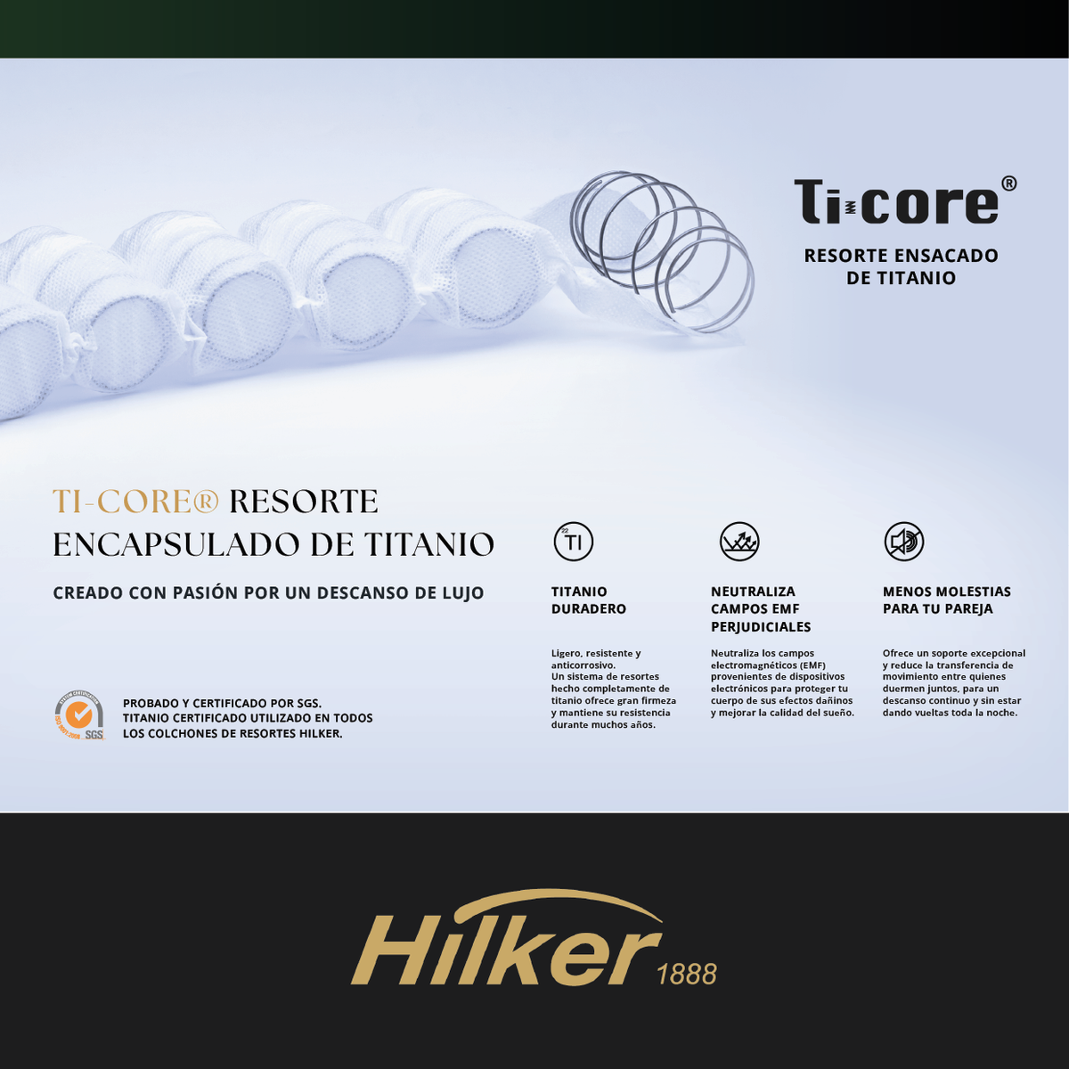 Los resortes pocket de titanio Ti-Core® brindan soporte preciso y reducen la transferencia de movimiento.