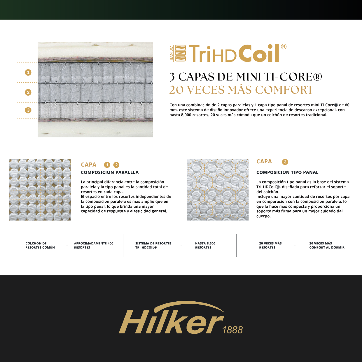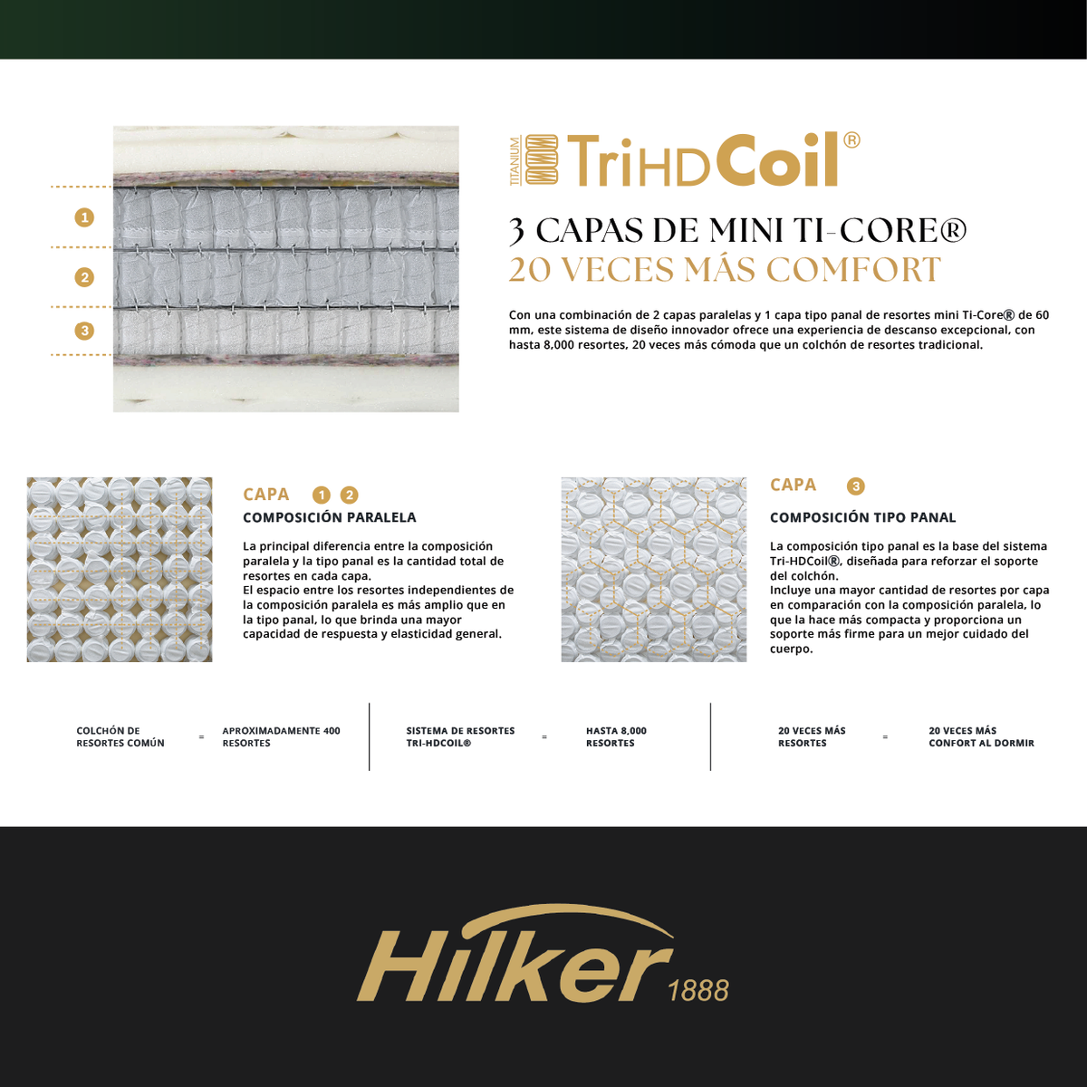 Cuenta con el exclusivo sistema Tri-HDCoil®, compuesto por 3 capas de mini resortes pocket Ti-Core® de titanio.